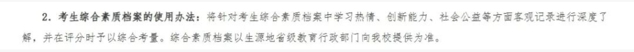 | 中國(guó)人民大學(xué) | 考生綜合素質(zhì)檔案作為面試參考材料 |