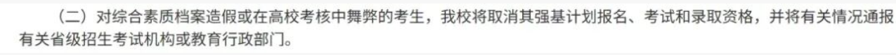 此外,高校會(huì)在校測(cè)環(huán)節(jié)審查材料的真實(shí)性。例如南京大學(xué),雖然未明確綜合素質(zhì)檔案具體作用,但對(duì)造假舞弊的考生,會(huì)取消其強(qiáng)基計(jì)劃資格,并通報(bào)省級(jí)招生考試機(jī)構(gòu)或教育行政部門。