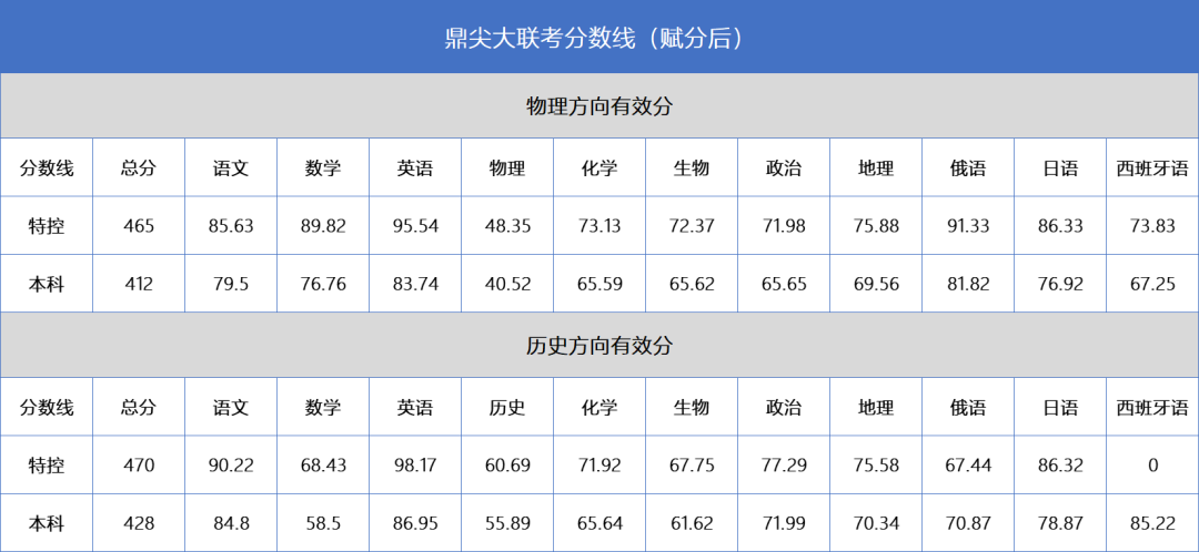 物理方向:特控線465分,本科線412分。