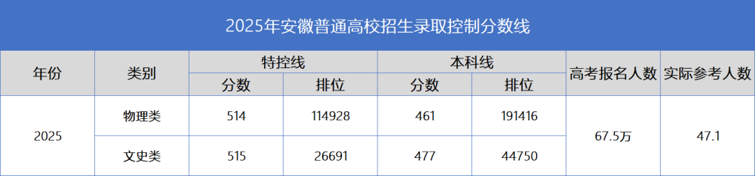 計(jì)算公式:預(yù)估高考成績(jī)=自己聯(lián)考成績(jī)-聯(lián)考劃線+514/461(或515/477)(2025年安徽省特控線/本科線)。