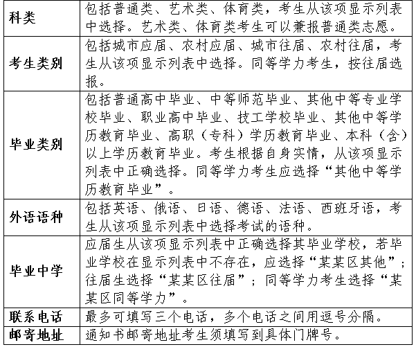 考生報名系統(tǒng)注冊完成后,須填寫考生基本信息、學(xué)習(xí)信息、家庭信息、簡歷信息、選報信息等事項。考生根據(jù)自身實情,如實、準(zhǔn)確填報各項內(nèi)容。所有帶*信息項必須填寫,不能為空。