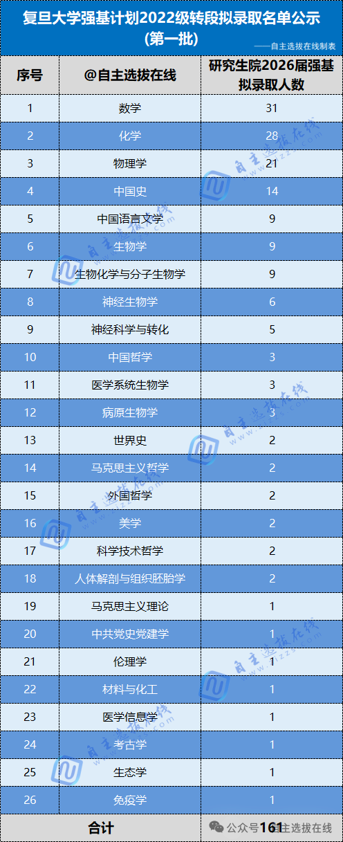 1??2022年復(fù)旦大學(xué)強(qiáng)基計(jì)劃錄取約191人,轉(zhuǎn)段161人,轉(zhuǎn)段率達(dá)84.3%。涉及17個(gè)學(xué)院26個(gè)專業(yè),碩士57人,直博104人。