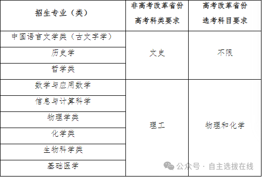 復(fù)旦大學(xué)強(qiáng)基計(jì)劃招生專業(yè)共9個(gè),理科專業(yè)6個(gè),文科專業(yè)3個(gè),詳細(xì)專業(yè)及選科要求如下: