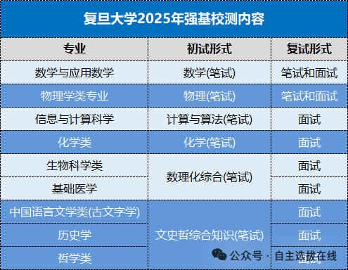 注:以下來自2025年復(fù)旦大學(xué)強(qiáng)基計(jì)劃招生簡章,實(shí)際情況請(qǐng)以當(dāng)年高校公布為準(zhǔn)。