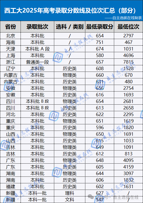 因西北工業(yè)大學(xué)暫未公布2025年高考錄取分?jǐn)?shù)線,自主選拔在線為大家匯總整理了各省市教育考試院公布的西工大2025省市高考錄取分?jǐn)?shù)線及位次匯總,供各位考生家長參考。