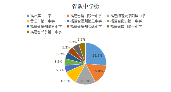 2025年福建省中學生數(shù)學聯(lián)賽省隊選拔呈現(xiàn)出福州與廈門雙雄并立,優(yōu)質(zhì)生源相對集中的格局。其中,福州第一中學以5人入選、占比26.3% 的成績穩(wěn)居榜首;來自廈門的福建省廈門雙十中學與福州的福建師范大學附屬中學并列第二,均各有3人入選。這三所中學構(gòu)成了省隊的第一集團,占據(jù)了超過半數(shù)的席位。此外,泉州地區(qū)的學校也展現(xiàn)出不俗的實力,晉江市第一中學以2人入選排名第三,而福建省南安第一中學、福建省泉州第五中學等校也均有學生入選,共同構(gòu)成了省隊的中堅力量。