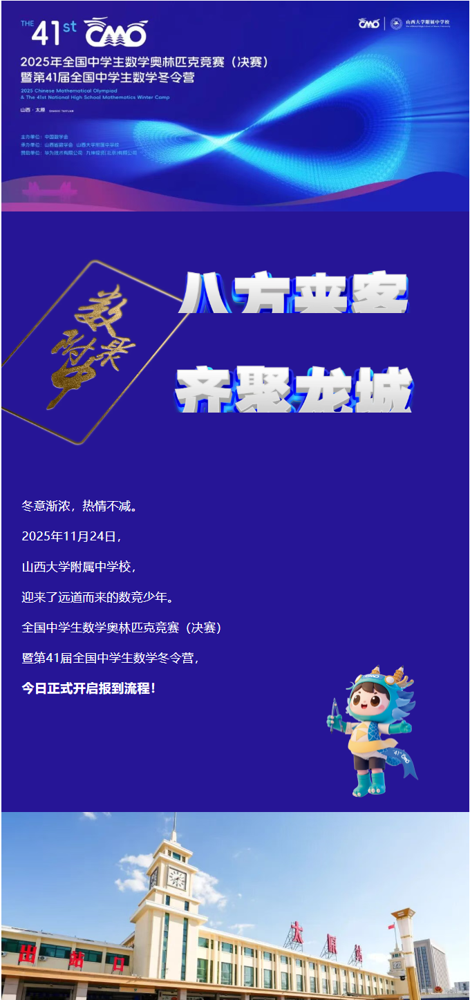 2025年全國中學(xué)生數(shù)學(xué)奧林匹克競賽(決賽)暨第41屆全國中學(xué)生數(shù)學(xué)冬令營11月25日(今天)在山西大學(xué)附中開幕。