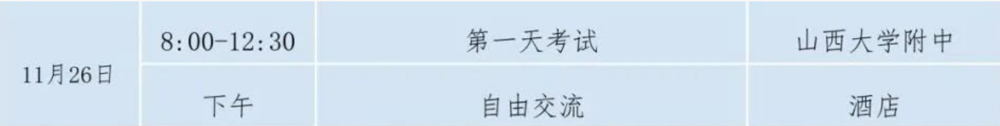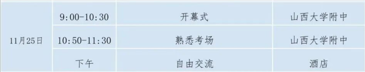 根據(jù)日程安排,開(kāi)幕式將于11月25日上午9:00在山西大學(xué)附中藝體中心隆重舉行;11月26日及27日為考試日,每天早上8:00-12:30分別進(jìn)行一場(chǎng)考試;11月30日14:30-16:30進(jìn)行閉幕式。依據(jù)熱心網(wǎng)友提供,自主選拔在線(xiàn)團(tuán)隊(duì)為大家整理了今天開(kāi)幕式的情況,一起來(lái)看看吧!