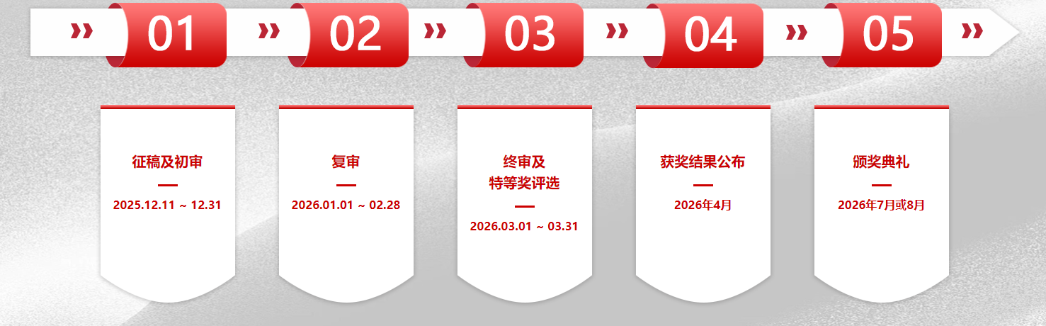 本屆大賽分為征稿及初審、復(fù)審、終審及特等獎評選、獲獎結(jié)果公布和頒獎典禮五個環(huán)節(jié)。