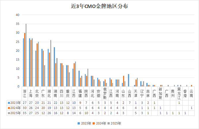 近3年CMO金牌地區(qū)分布