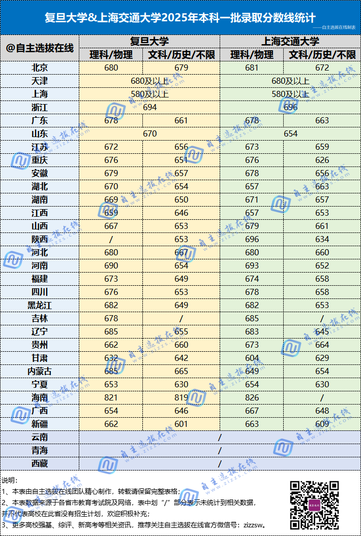 復(fù)旦、上交2025年高考錄取分?jǐn)?shù)線尚未公布,為了更好對(duì)比,自主選拔在線團(tuán)隊(duì)匯總整理了復(fù)旦大學(xué)和上海交通大學(xué)2025年本科一批錄取分?jǐn)?shù)線,以供考生家長參考。