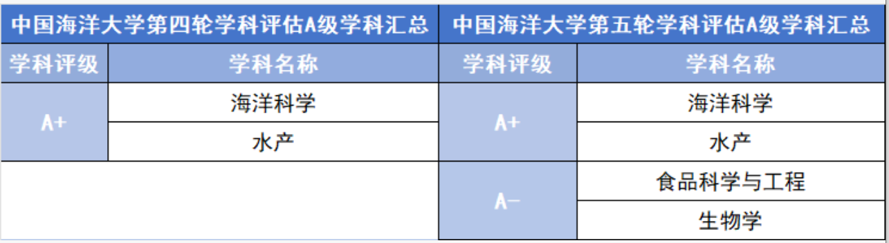 中國海洋大學(xué)有2個A+專業(yè):海洋科學(xué)、水產(chǎn);2個A-專業(yè):食品科學(xué)與工程、生物學(xué)。以下是具體的學(xué)科評估結(jié)果。