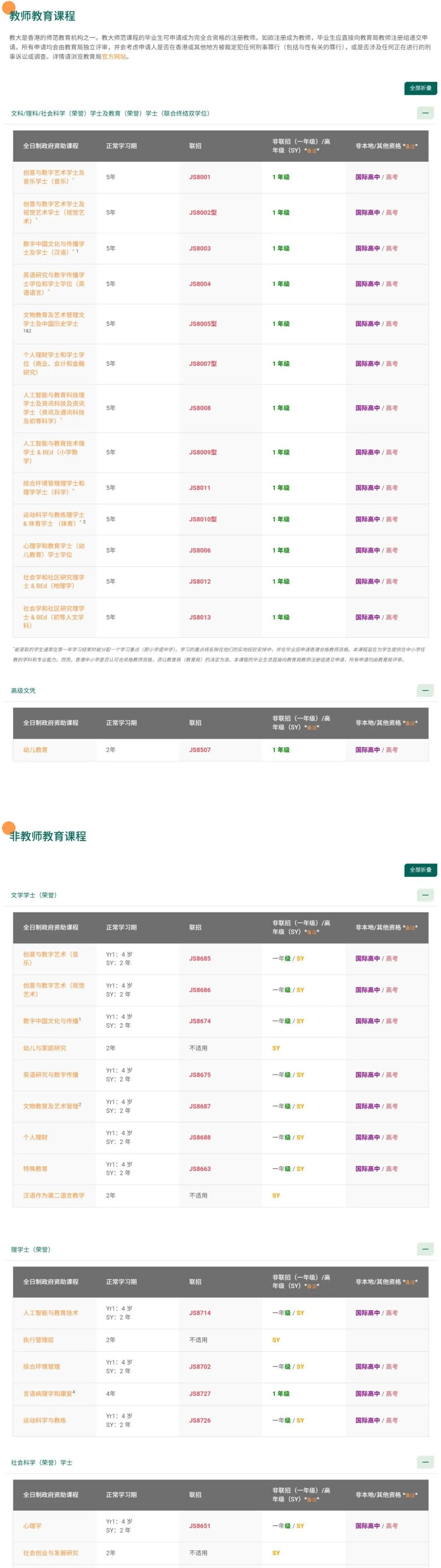 香港教育大學(xué)2026年內(nèi)地本科生課程一覽