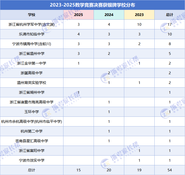 近三年浙江省共有54人獲得銀牌,其中23年19人獲得銀牌,24年20人獲得銀牌,25年15人獲得銀牌!