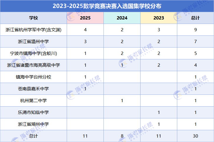 鎮(zhèn)海中學(xué)排名第三,三年5人入選,在23、24年皆2人入國集,25年1人入選!