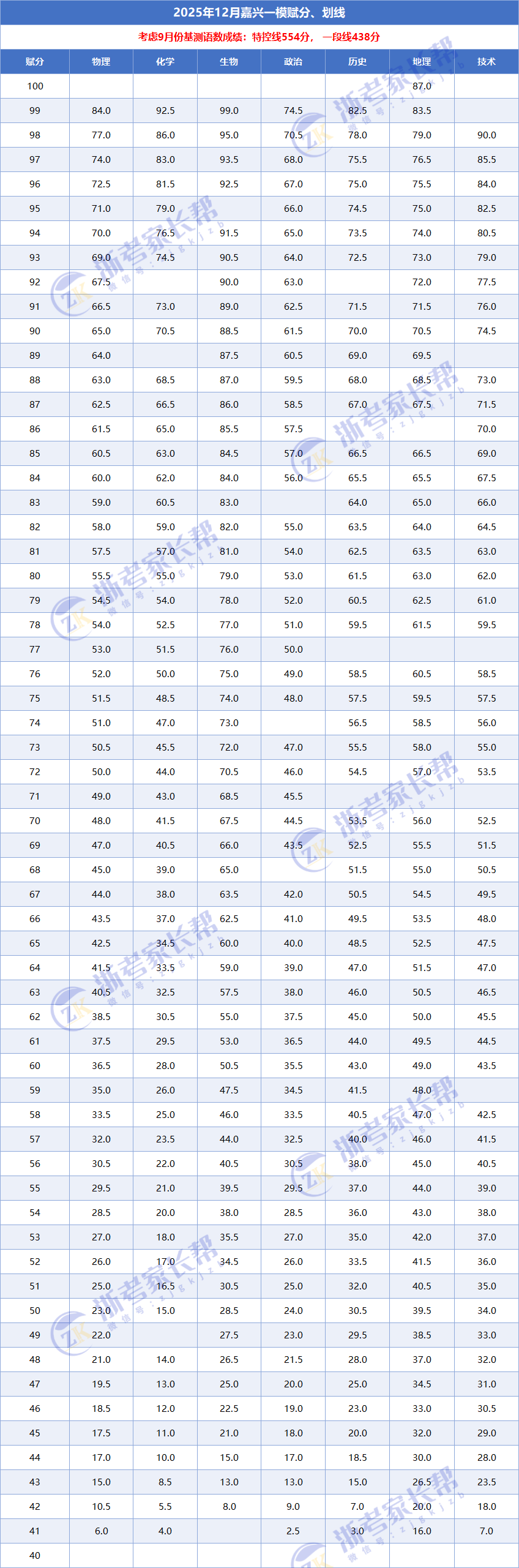 嘉興市2025年12月高三一模統(tǒng)考賦分表劃線公布